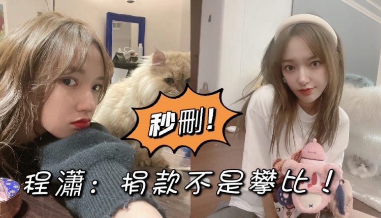 但沒想到這個數目居然引來了部分網友的質疑。21號,程潇在微博上做出回應:「捐也說,不捐也說,捐少了也說,捐多了也說,什麽時候開始用捐款來衡量一個人?捐款不是攀比……每個人盡自己的一份心關注在事件上不好嗎?」並貼出了「捐款」的字面解釋。