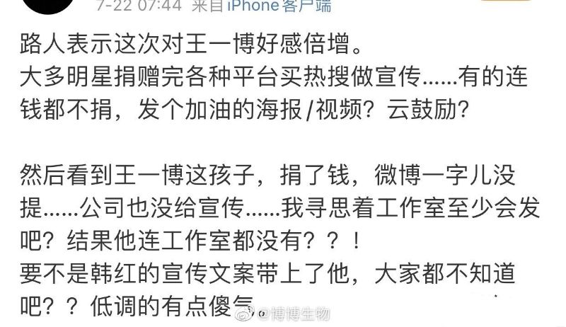 但沒想到原來王一博不但有捐款,甚至還作為韓紅慈善基金會的明星志願者,下午帶著物資和專業救助人員前往鄭州救災!如果不是韓紅基金會發出來,根本就沒人知道這個頂流已經推掉所有工作,直接上前線身體力行幫忙了!新聞詳情》正能量!王一博跟隨韓紅救援隊上河南前線救災!只做不說就是王一博!