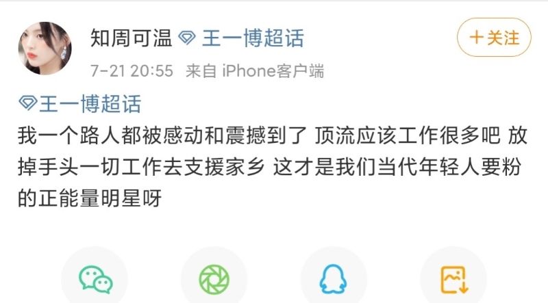 就…想到他了一直在說的:「讓流量配得上正能量」、「想做個對社會有幫助的人」王一博,要平安回來哦!