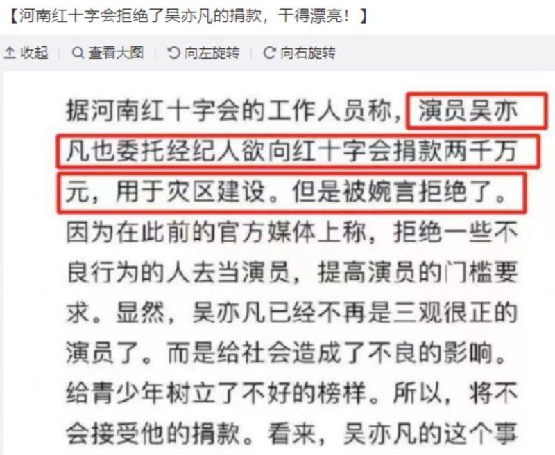 網傳吳亦凡捐款2000萬被拒?紅十字會公開的捐款名單回應了!