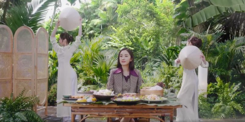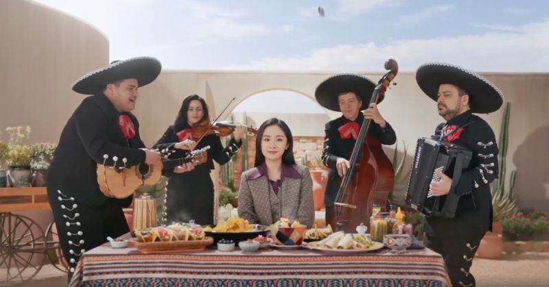 再來就是在餐廳中的楊冪,通過場景和美食轉換,帶出了亞洲各地美食主題,像是越南、墨西哥、日本等,立刻看餓了!