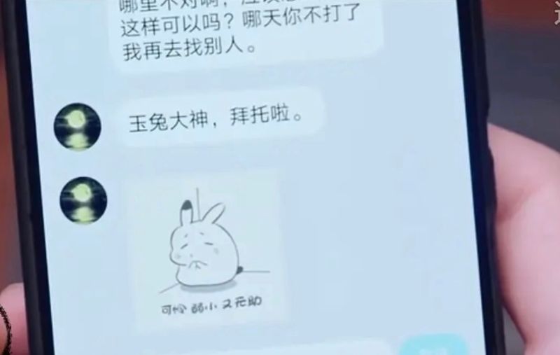 喬晶晶在求于途帶自己玩遊戲時,用的是流氓兔表情包。