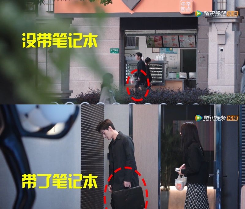于途覺得好吃,特地拐去了小區家門前買了包子給晶晶!這裡可以從他買包子時,因為從醫院回家,所以手上沒提筆記本,隨後回了趟家,再去喬晶晶的家時,手上除了有肉包子,還帶了筆記本了!
