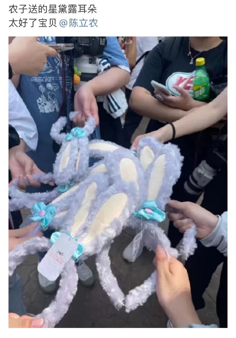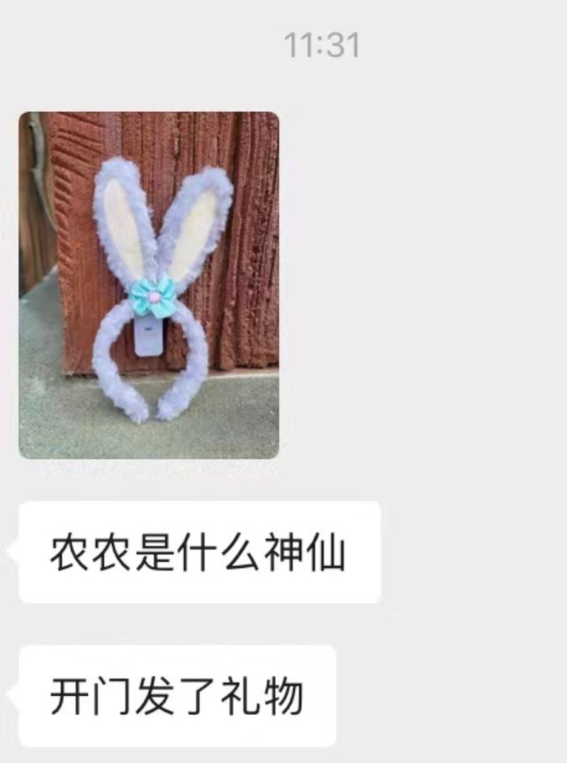 但沒想到發現有粉絲的農農,居然特地選購了20個園區內的兔子耳朵送給粉絲,重點是…還自己親自派送!!!