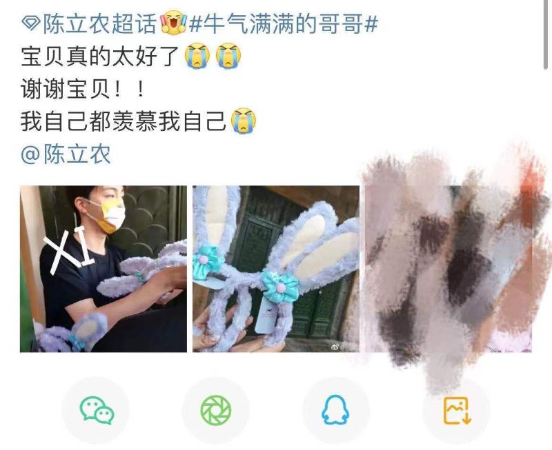 邊派兔子耳朵,邊提醒粉絲們要照顧自己的安全:「應該是夠的,我買了20個,你們下次在遊樂園要注意安全知道嗎?」據說,這個兔子耳朵一個要人民幣100多呢!