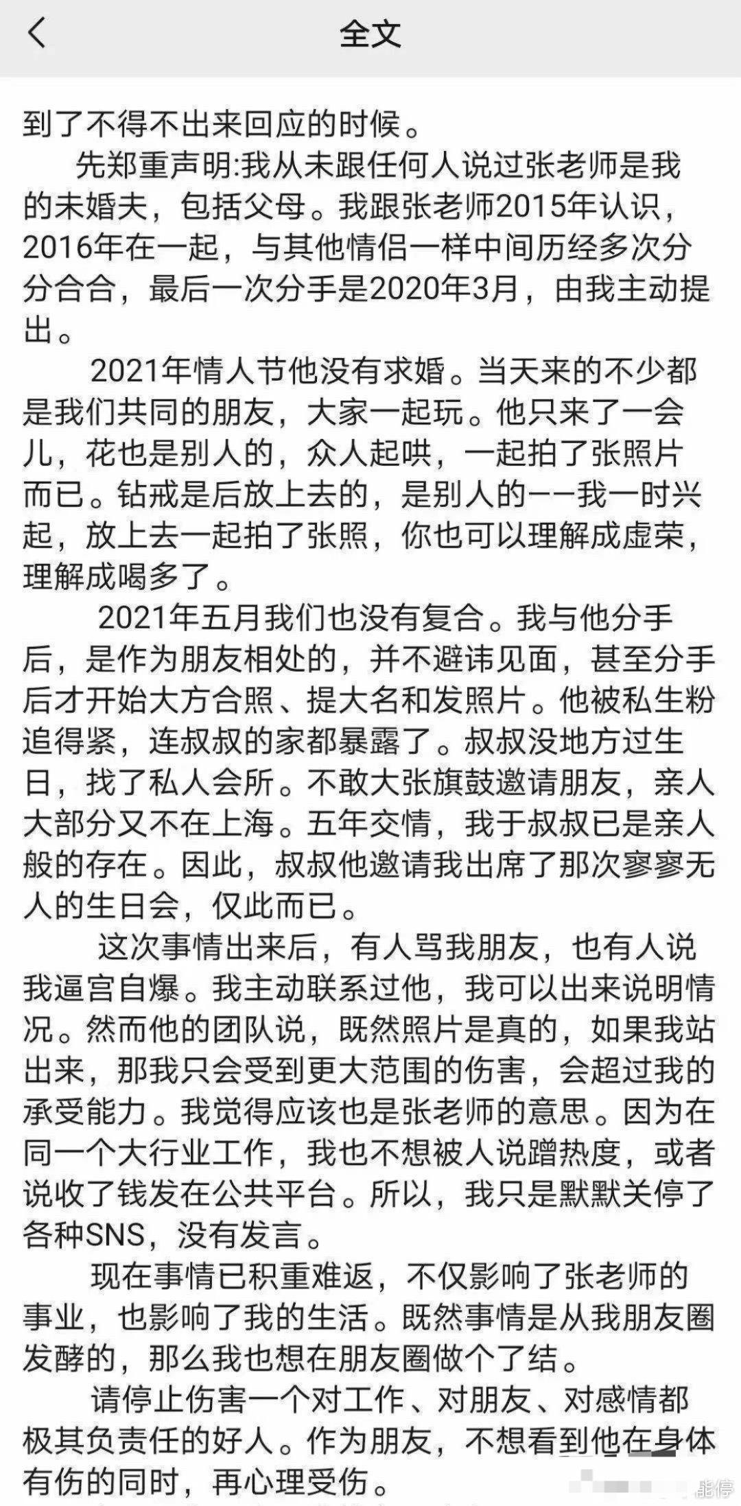 2號,疑似王佩雯在朋友圈發文,回應張哲瀚戀情瓜。重點:
