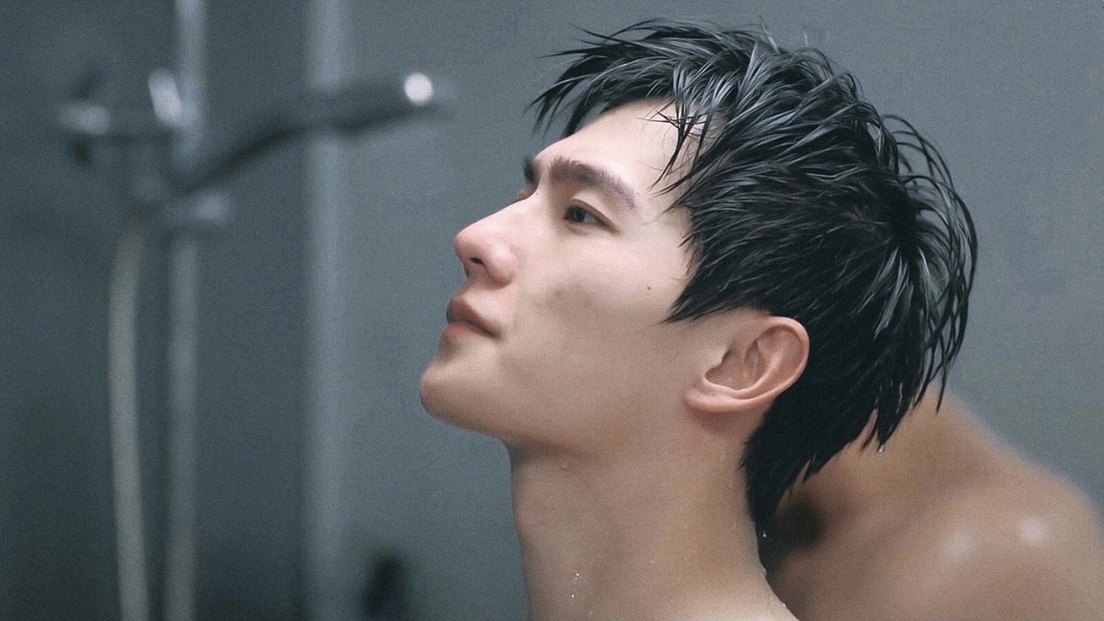 表示一般偶像劇的洗澡畫面,不都只是花灑下淋淋水就好了嗎?但于途這個澡真的是超真實,應該是第一次看見偶像劇裡男主,按順序歷經了洗髮水、沐浴露搓搓搓,這絕對是公費洗澡!先來看看..先把頭髮弄濕!