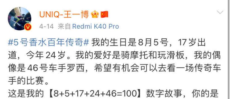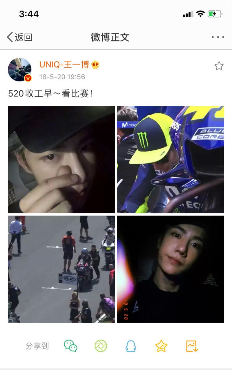 這麼大的消息,立刻炸出了追星男孩王一博,於是在他生日當天,粉絲們終於等待耶啵發博了!雖然和自己生日一點關係都沒有,依然是很酷蓋的追星方式,但寫的話也很有意思:「感謝你讓我愛上摩托!」