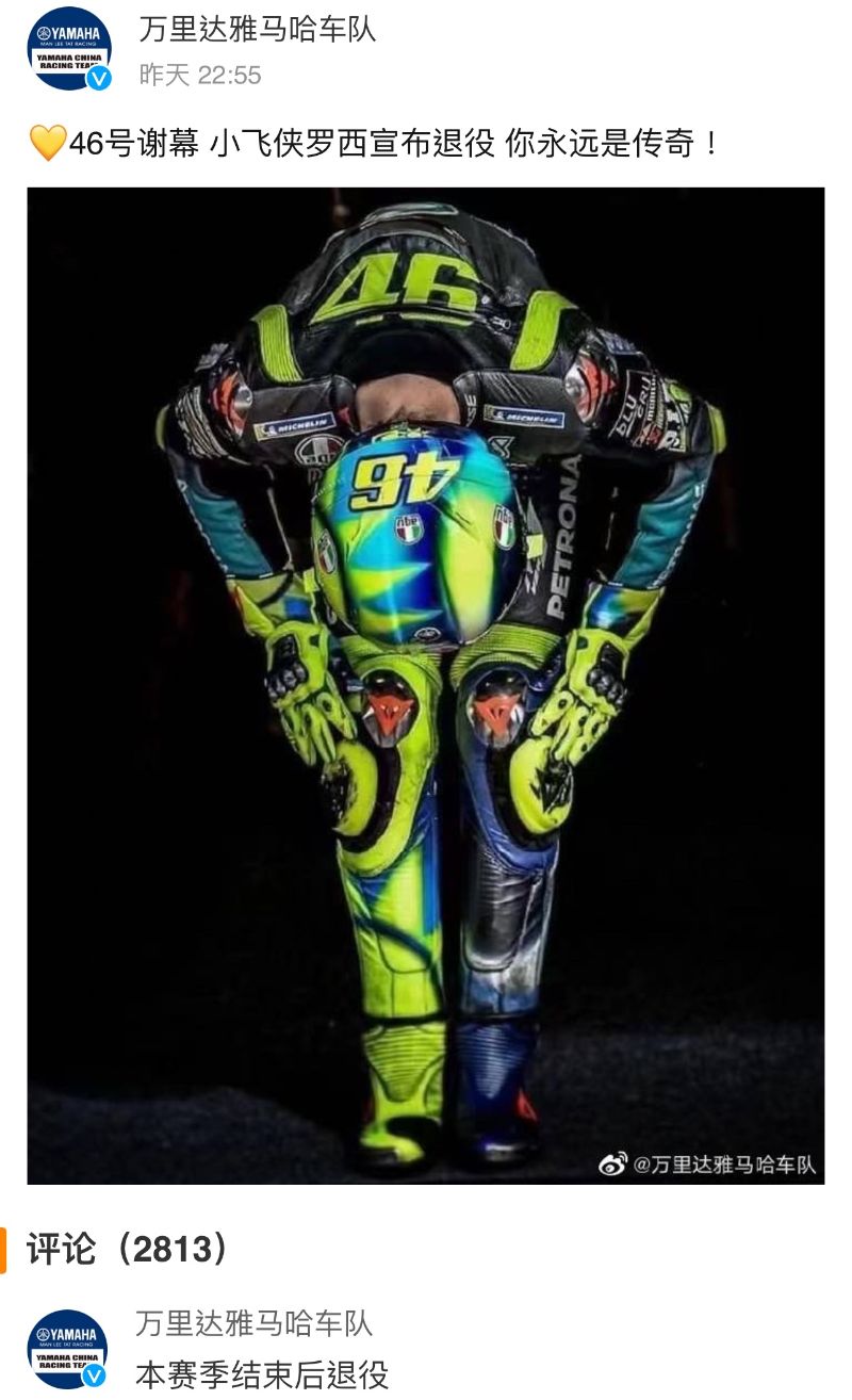但沒想到王一博的偶像,也就是賽車界的傳奇羅西,居然在他生日當天宣佈了退役!