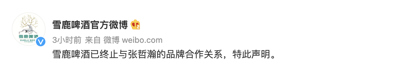 11)19:52 雪鹿啤酒終止合作!