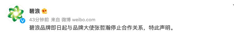 電影維和防暴隊終止與張哲瀚的所有合作!