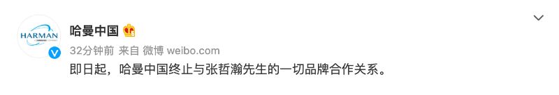 24)21:36 哈曼中國終止合作