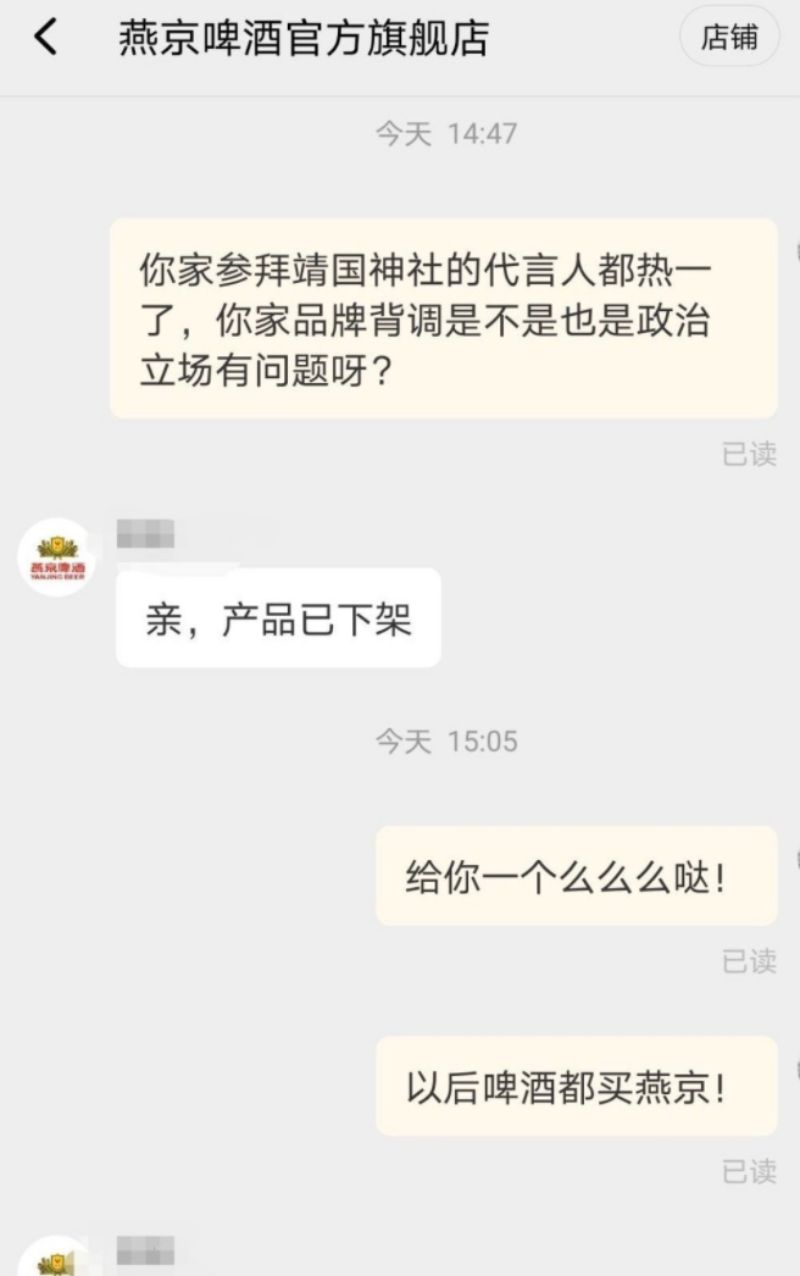 而最經典的是燕京啤酒旗下的燕京雪鹿啤酒,一開始客服回應表示商品已經下架。