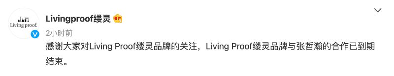 接著且初也終止與張哲瀚合作 ,並對天貓旗艦店合作主播的錯誤言論表示抱歉,當時該主播對於網友評論張哲瀚事件表示:「中國人沒有素質」,並將關閉直播間30天,做深刻反省。