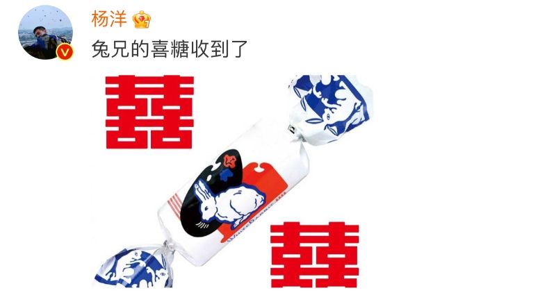 但夢幻的互動來啦!楊洋居然在評論區回復,表示:「兔兄的喜糖收到了」嗚呼!原來榮耀夫婦的喜糖居然是大白兔糖!!!超有sense的啊!我們的于途就是兔神啊!!!不錯不錯,這波操作很可以!