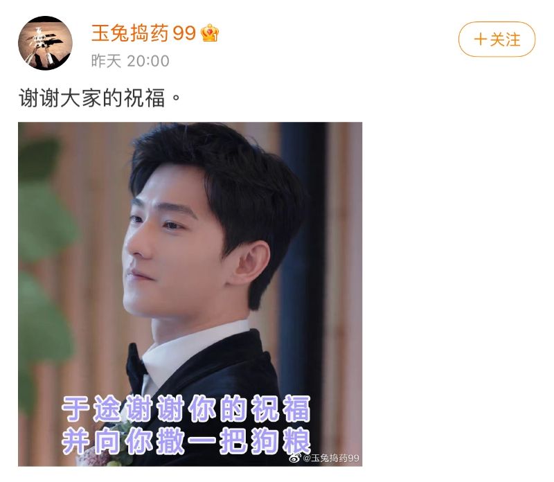 沒想到這場婚禮引來的互動還不止這些,于老師發帖感謝大家的祝福!