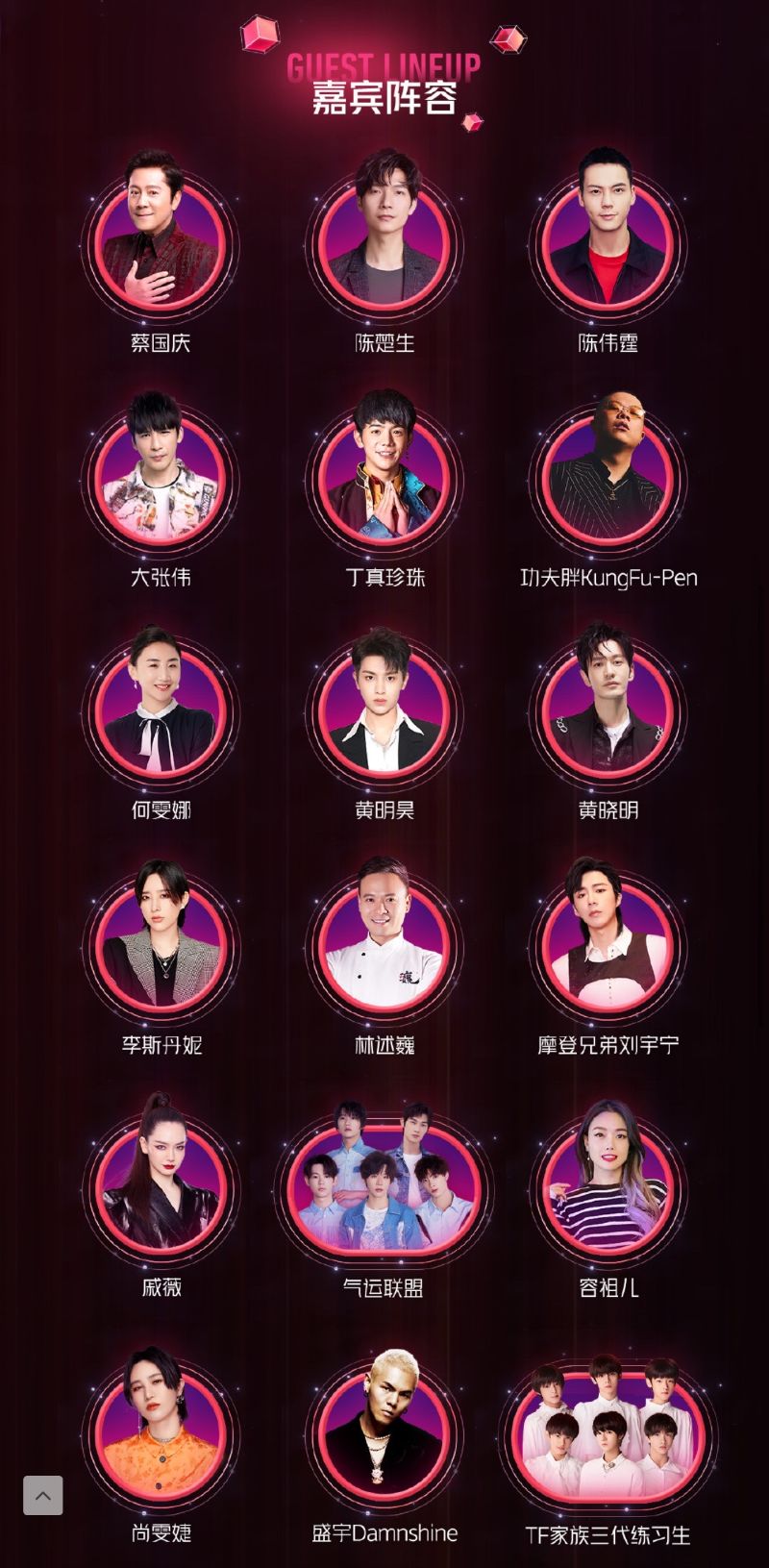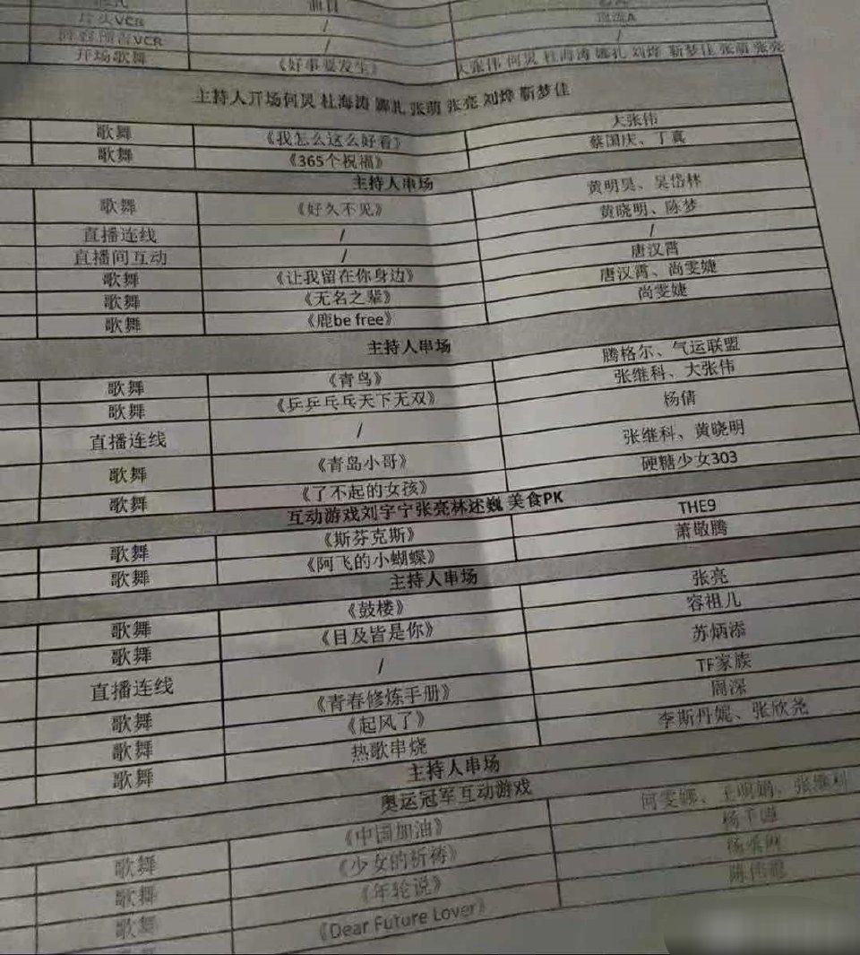 另外今晚的節目表也在網絡瘋傳,這就來看看:可以發現TF家族三代練習生又唱《青春修煉手冊》了啊!!而黃曉明也會和他的奧運冠軍表妹陳夢連線,終於可以看見這一對表兄妹在鏡頭前的互動啦!其他詳情請看👇