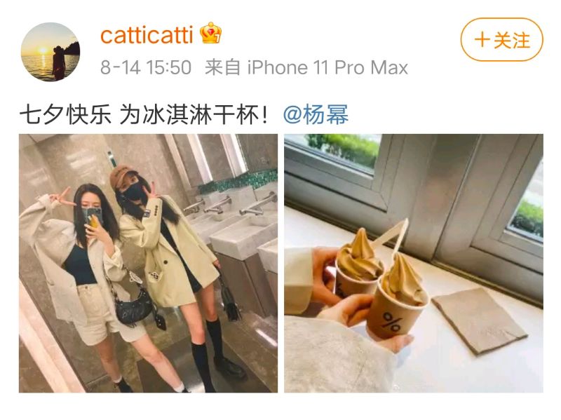 而當天,大冪冪的閨蜜貓姐就打卡同一家咖啡館,表示和大冪冪去吃冰淇淋,也錘了網友偶遇的真的是她們啦!