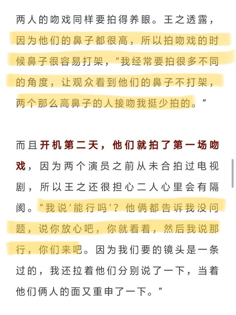 另外,導演在訪問中,也公開了拍攝時遇到的難題,其中就是兩人的吻戲!王之表示:「因為他們的鼻子都很高,所以拍吻戲的時候鼻子很容易大家,我經常要拍很多不同的角度,讓觀眾看到他們的鼻子不打架,兩個那麼高鼻子的人接吻我挺少拍的。」