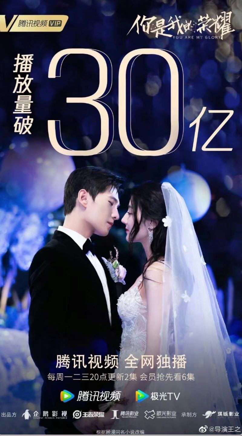 嗚哇!恭喜楊洋、迪麗熱巴主演的《你是我的榮耀》,在8月20號這天播放量突破30億啦!!!
