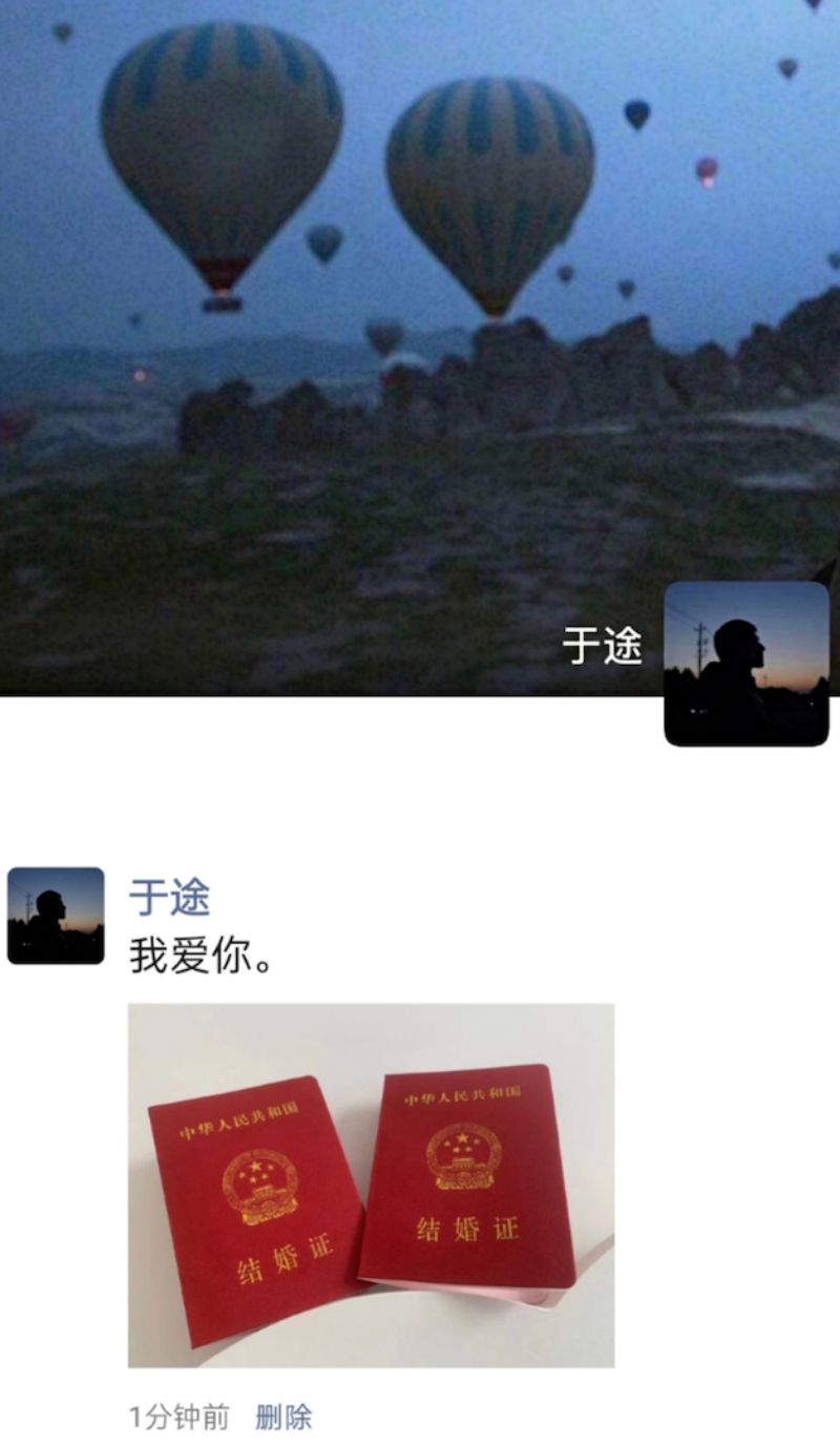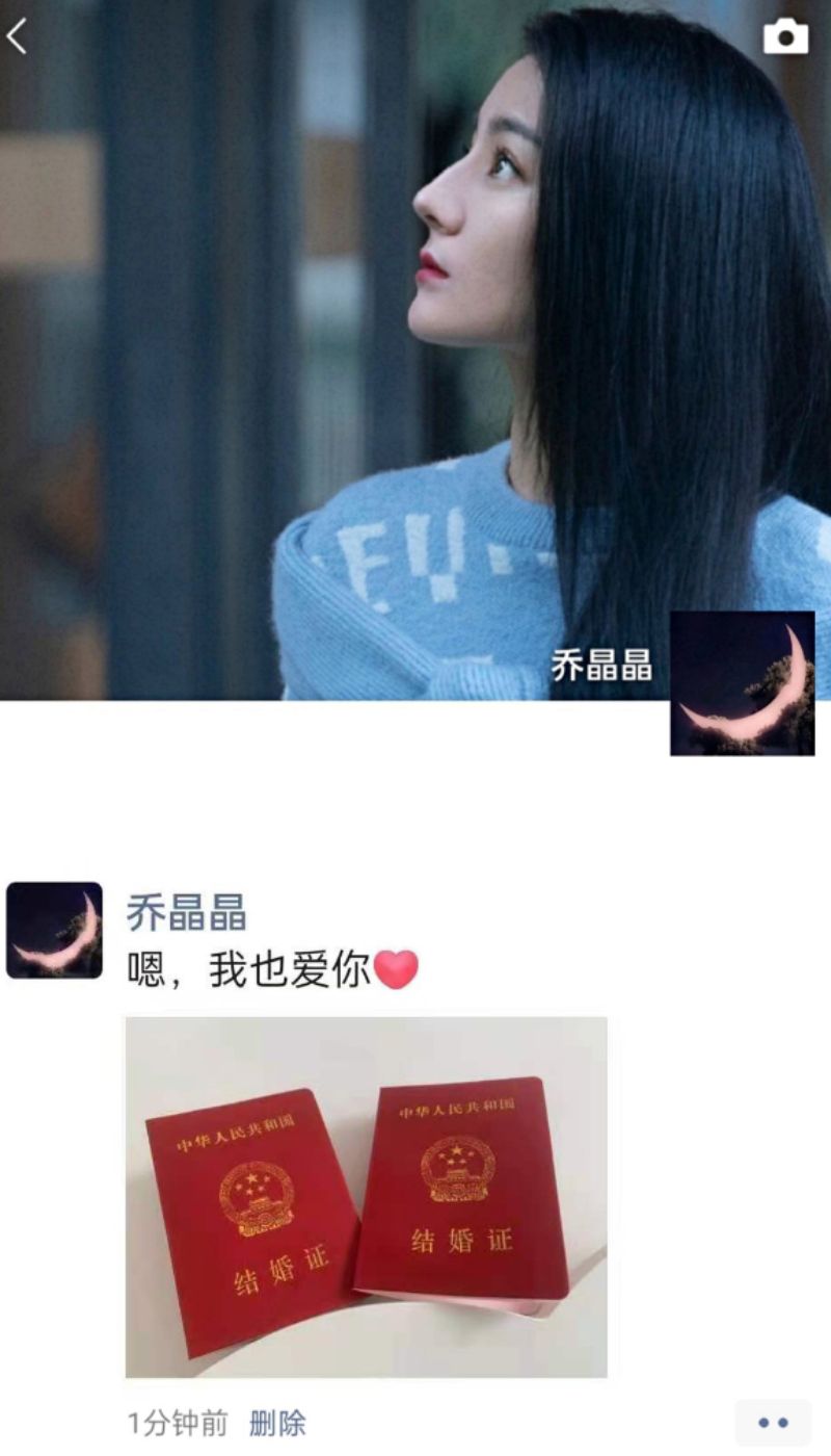 重點是,官微也在這天公開了彩蛋!就是榮耀夫婦在結婚當天發的朋友圈啊!!來看看,我們的于老師發了結婚證,向晶晶喊話:「我愛你。」