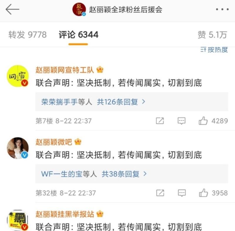 這篇貼文,獲得了趙麗穎網宣特工隊、趙麗穎微吧、趙麗穎掛黑舉報站等官方粉絲組織支持。