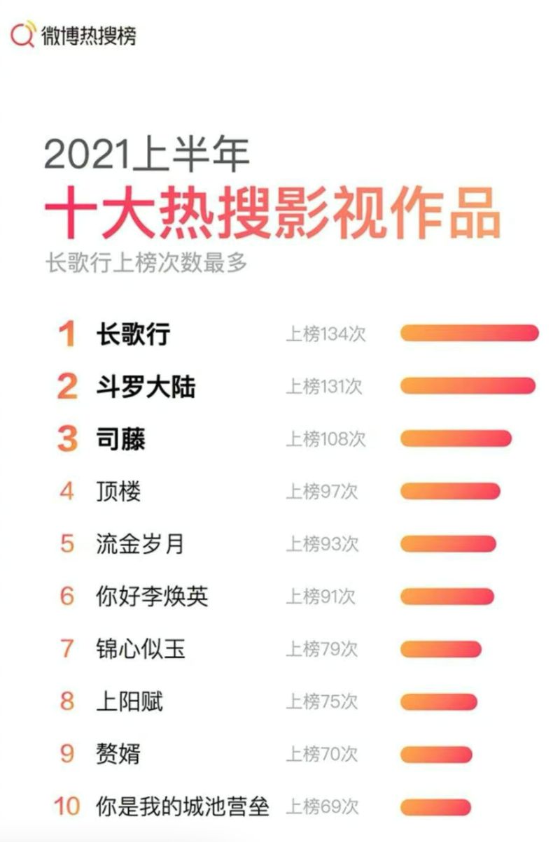 恭喜《長歌行》獲得熱搜影視作品第一名!
