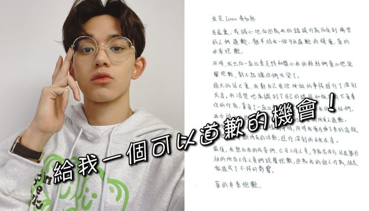 Lucas深刻反省了因本人的錯誤行為而造成的巨大傷害和失望,本司也痛感在藝人管理上存在不足之處,對此負有不可推卸的責任。再次對Lucas的私生活問題,給包括粉絲們在內的很多人帶來困擾深表歉意。」
