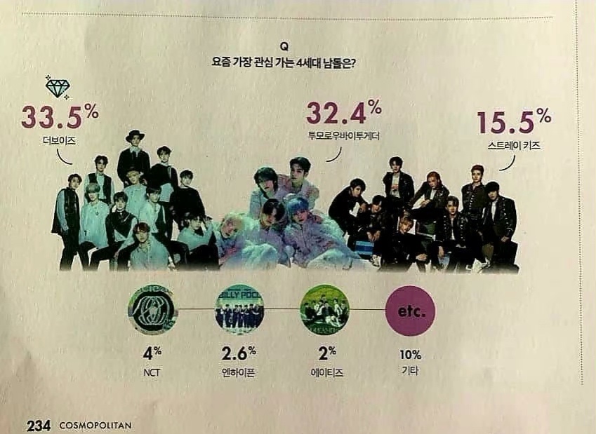 沒錯!究竟韓國10代年輕人,最感興趣的四代男女團是那幾團呢?這就來看看韓國COSMOPOLITAN針對10代年輕人的調查,看看四代男女團誰最出線?