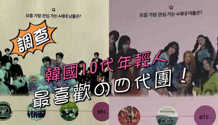 是噠!根據調查,韓國10代年輕人最感興趣的男女團如上👆 你喜歡的四代團上榜了嗎?