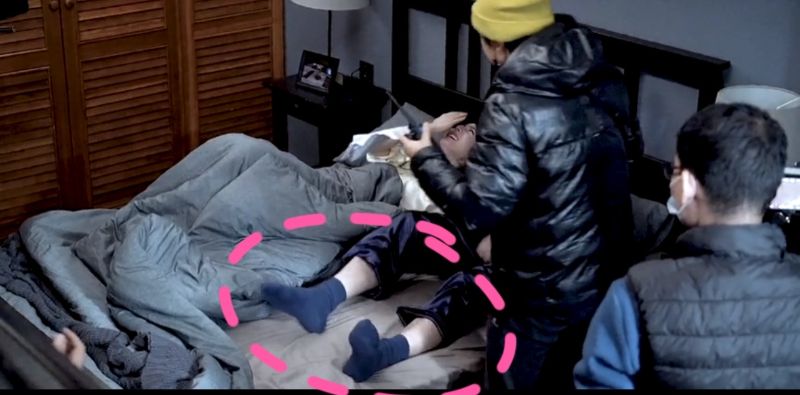 不過這段花絮還發現了另一個亮點,就是我們于老師的老人襪子啊!!!哇咧,原來楊洋除了換上睡衣,還穿上了襪子,這是為了符合于老師的人設嗎?