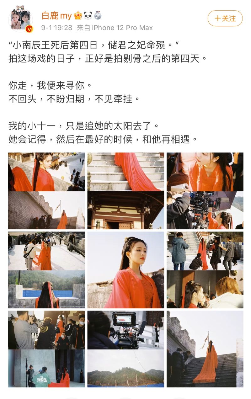 而1號晚上,我們的“時宜”白鹿更文,放出了大量的拍攝花絮照!配文如下👇