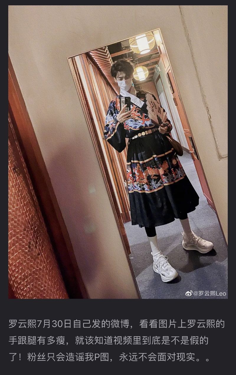 其實從視頻中來看,羅雲熙的臉和腿的確很瘦,而網友也放出了羅雲熙7月底自己上傳的自拍照,證明視頻沒有經過處理。