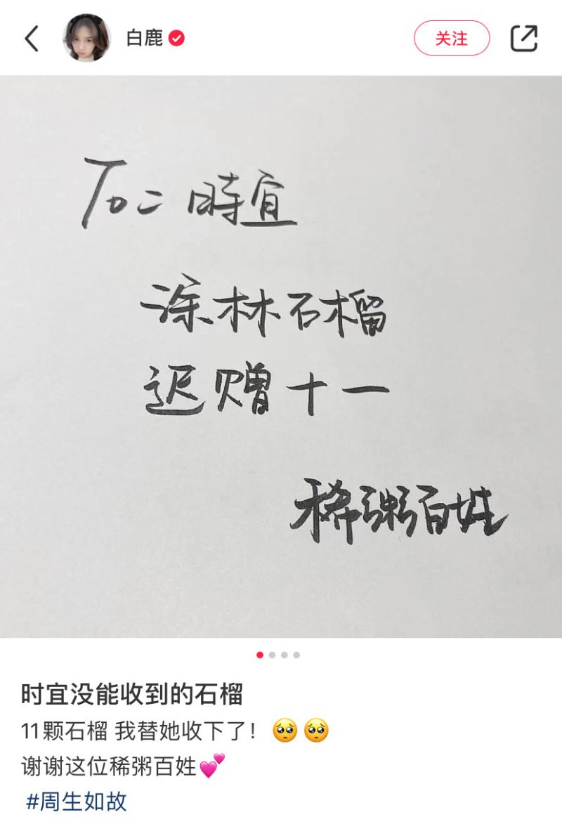 但還未定檔前,不少”稀粥的百姓“都太投入了,後果就是…我們的白鹿收到了好多的石榴啊!!!