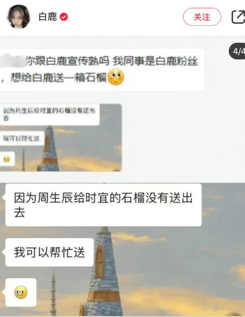 白鹿先是在小紅書更新了自己收到的石榴,原來有劇迷透過認識的人,將時宜沒收到的塗林石榴,送給了白鹿。