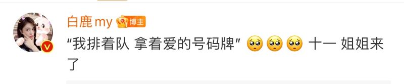 BUT,我們的白鹿怎麼可能這麼正經八百,這不…評論區立刻就追加了留言:「“我排著隊 拿著愛的號碼牌”,十一,姐姐來了!」