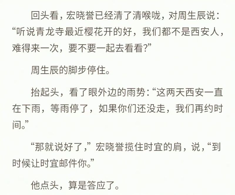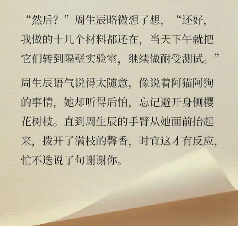 原著中,這段周生辰在時宜家樓下的描寫篇幅不長…