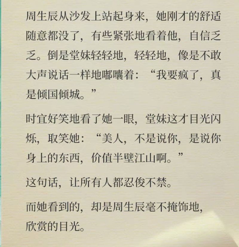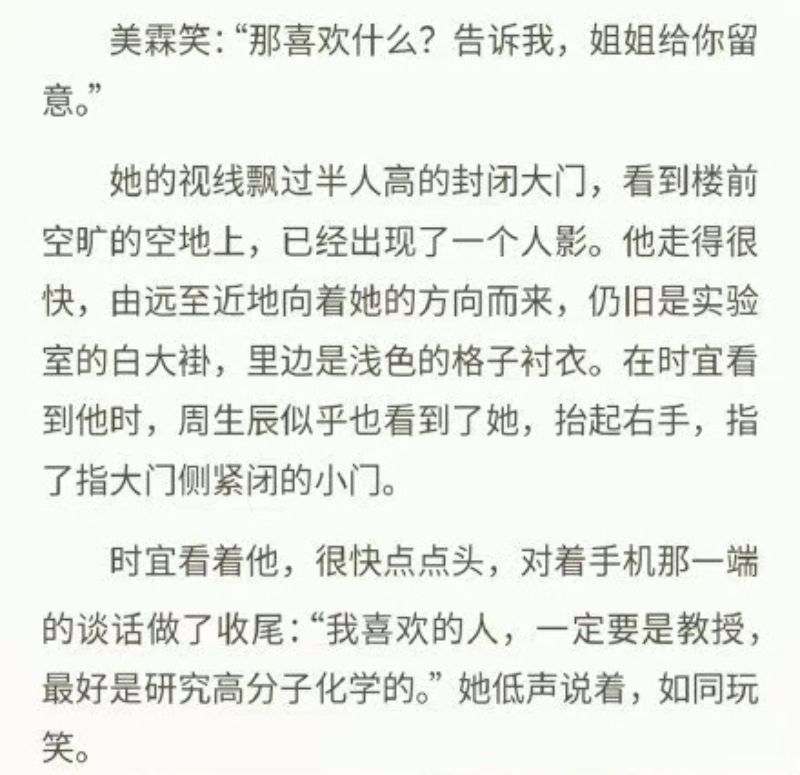 原著中時宜看著周生辰,說出自己的擇偶條件~