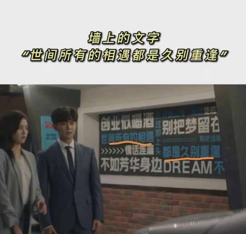 時辰CP在一起時,兩人經過的黑板報的文字都特別有心,文字很符合十一和周生辰跨越千年再相愛的經歷:「世間所有的相遇,都是久別重逢…」