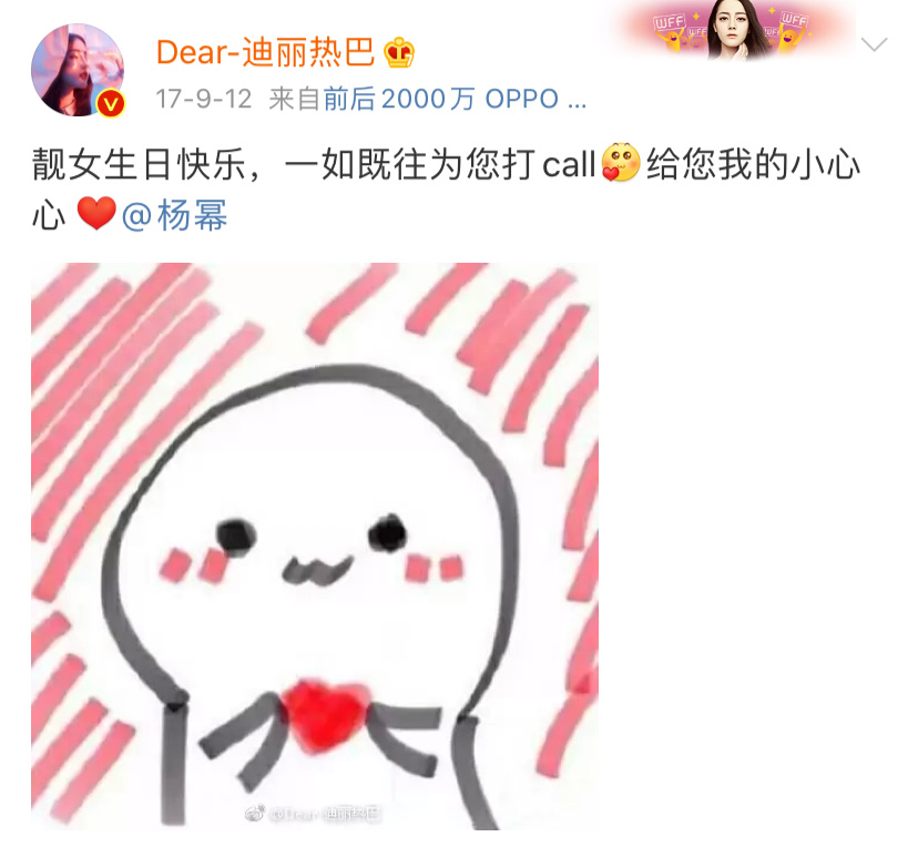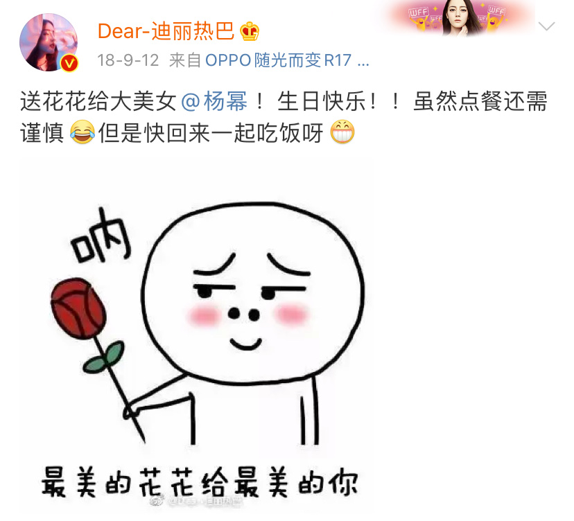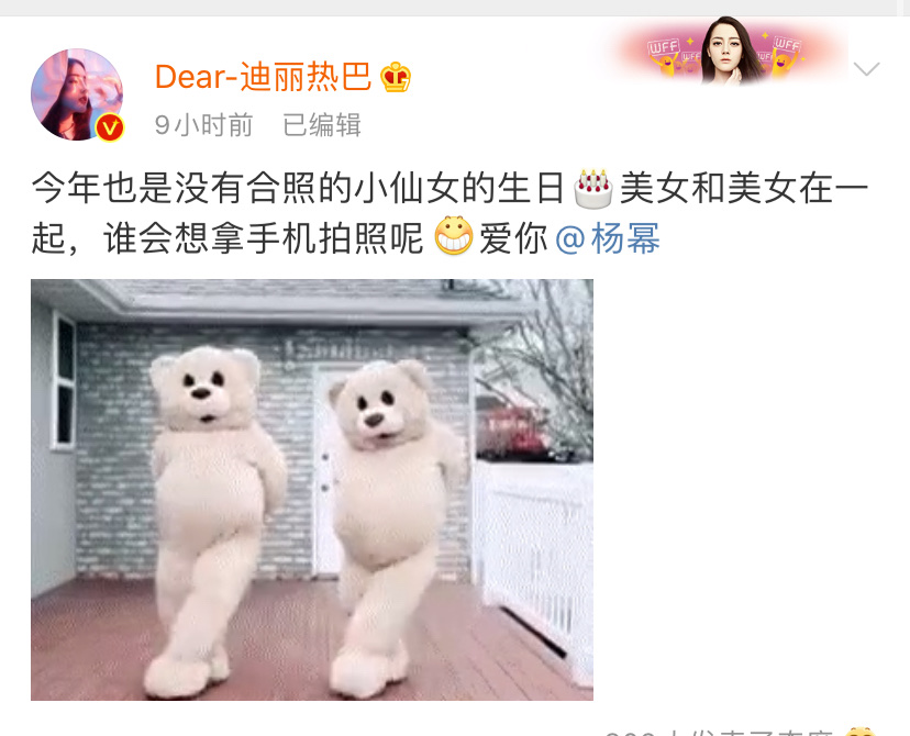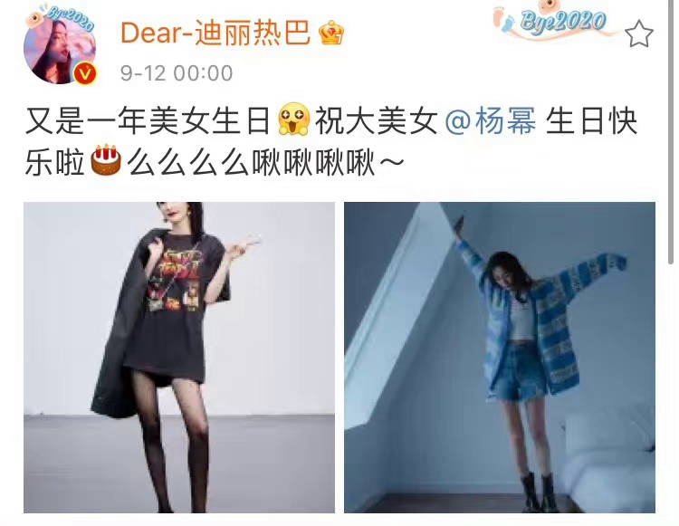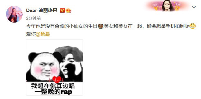 而2020年的祝福卻不小心上了黑熱搜,因為熱巴一如既往為發大冪冪慶生,也一如既往發表情包,但卻不小心選來了這張~先看熱巴貼文!「今年也是沒有合照的小仙女的生日!美女和美女在一起,誰會想拿手機拍照呢?愛你@楊冪」