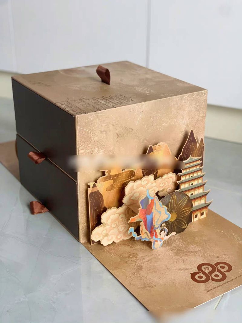 而禮盒的兩邊也藏有巧思,一邊是3D立體的嫦娥奔月,一整個古色古香~