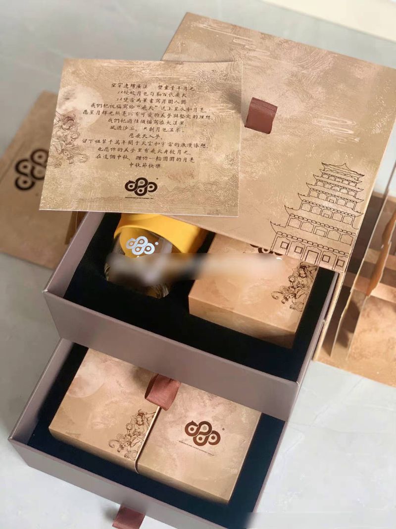 就連禮盒中附送的卡片內容,也寫得十分有心思:「願飛天入夢,留下祖輩千萬年關於天空和宇宙的浪漫懷想,也愿你的美夢裡有飛天身披月光,在這個中秋,贈你一輪圓圓的月亮,中秋節快樂。」留意到了嗎?配合中國風,直接採用了繁體字呢!