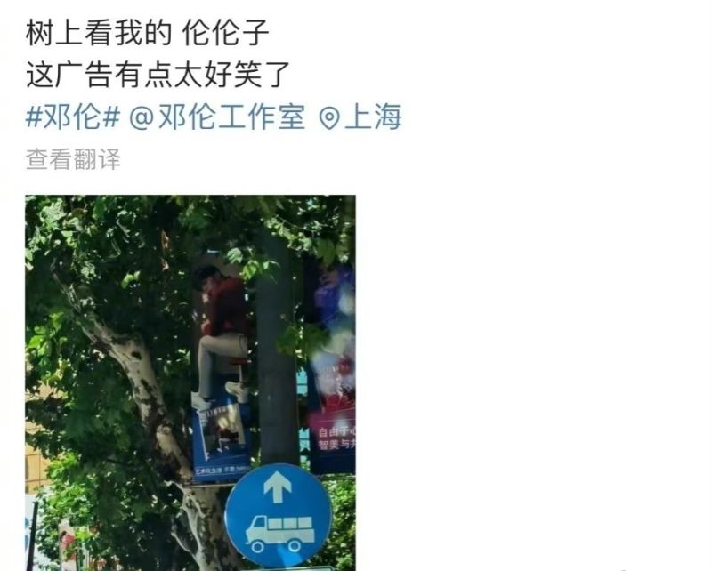先來看看,有粉絲發文艾特了鄧倫和工作室,表示:「樹上看我的倫倫子,這廣告有點太好笑了!」