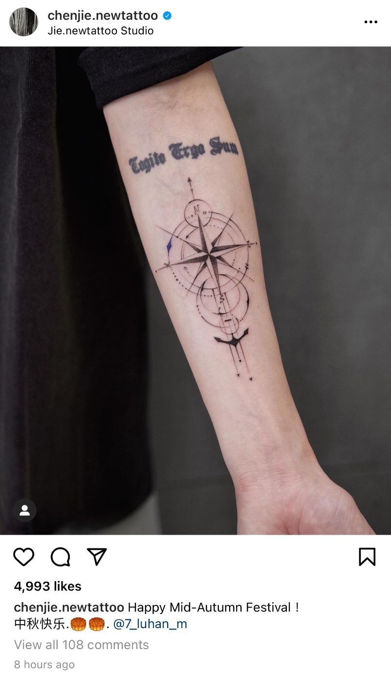而紋身師也發了另一個角度的紋身照,並艾特了鹿晗!先來看看這個新紋身,第一眼看下去,就像是羅盤一樣~