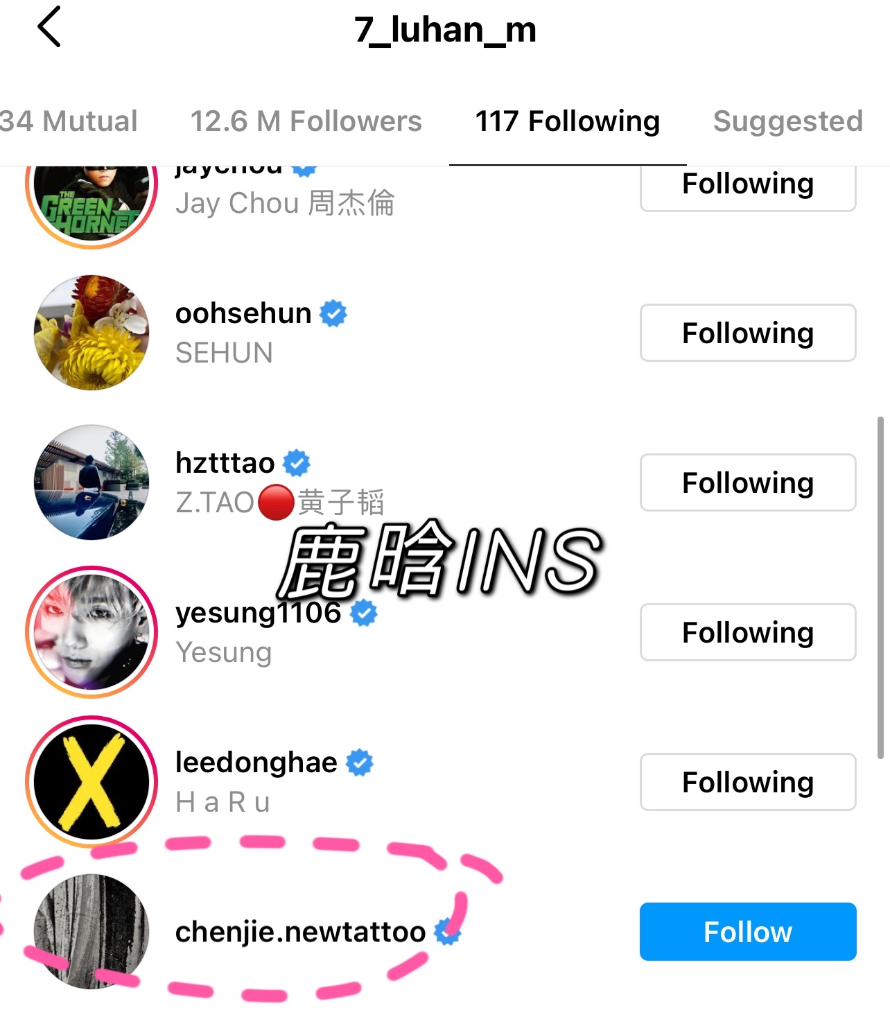另外,不管是鹿晗還是關曉彤的INS,都追蹤了這位紋身師傅~