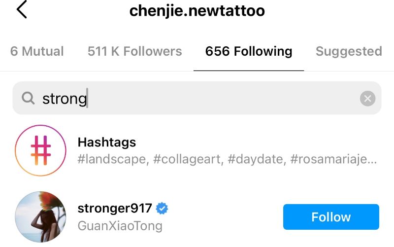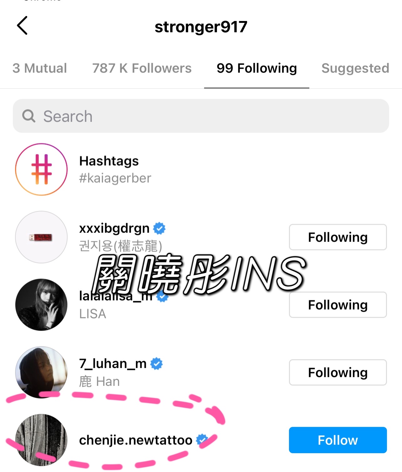 另外,不管是鹿晗還是關曉彤的INS,都追蹤了這位紋身師傅~