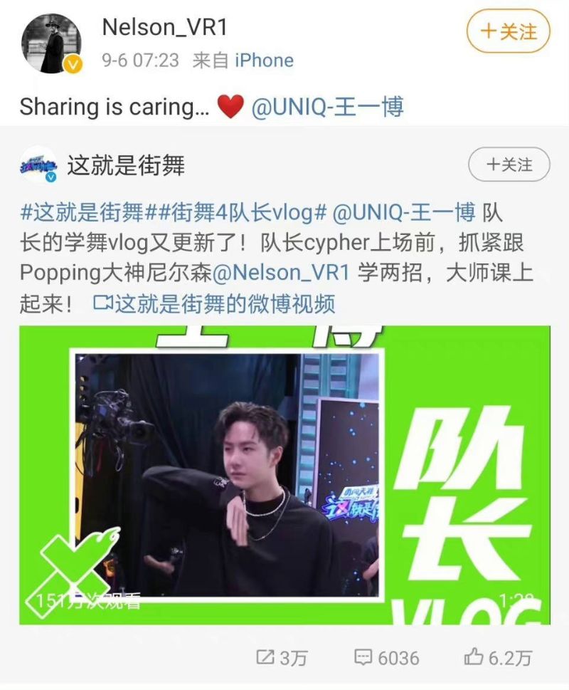 不得不說,Nelson看得出和王一博很投契,在他為數不多的微博中,好多都和王一博隊長有關!
