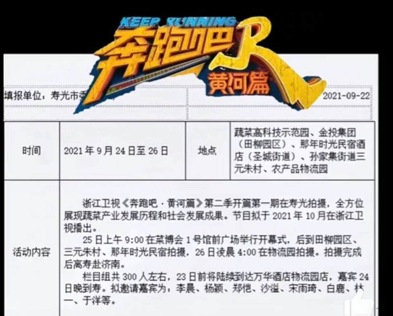 來來來!雖然沒蹲到官宣,但真的蹲到了節目錄製啦!!!是噠!《奔跑吧》黃河篇2開始錄製,之前已經網傳節目錄製表,25號上午會抵達山東進行錄製~