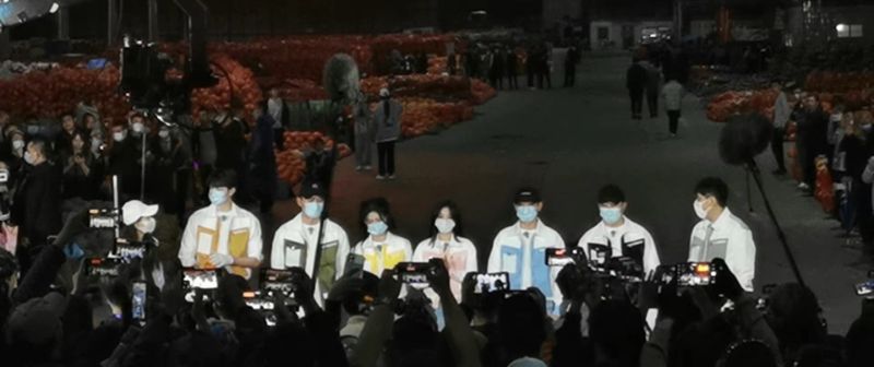 嗚哇!原來節目組安排了跑男團參與助農賣菜活動,凌晨就到了當地最大的批發菜市幫忙菜農包裝,並在蔬菜外貼上貼紙做標記!來看我們宋雨琦乖乖的幫忙菜農~