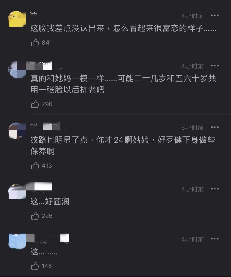 「真的和她媽一模一樣,可能二十幾歲和五六十歲共用一張臉以後抗老吧?」